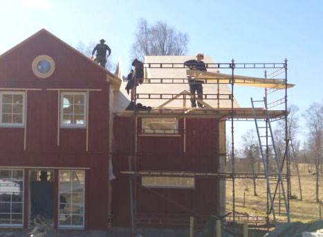 Vi erbjuder "Färdigt utvändigt", vilket innebär att vi bygger stommen i våra lokaler i Mjöbäck.